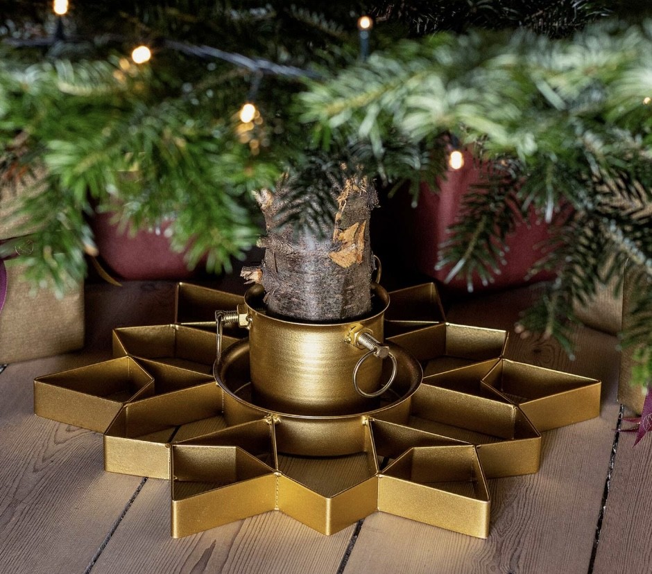 Juletræsfod i guld med vandbeholder – Mascha Vang