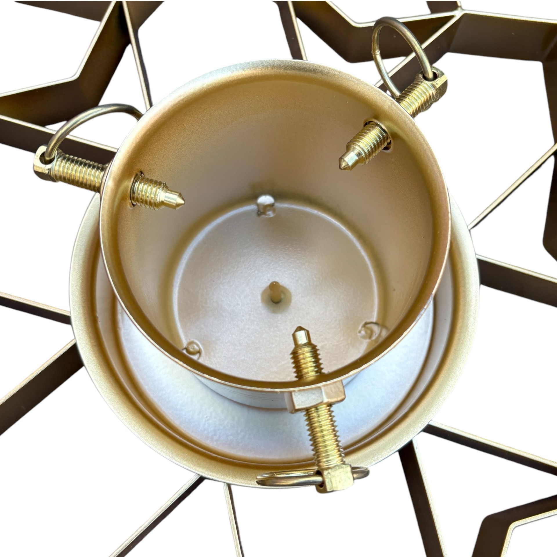 Denne smukke juletræsfod i guldlook design er fremstillet af Mascha Vang som også er flot at se på, når træet står frit uden pakker under juletræet. Med denne juletræsfod står dit juletræ stabilt og flot, og du har mulighed for at vande træet, for en længere holdbarhed af juletræet.